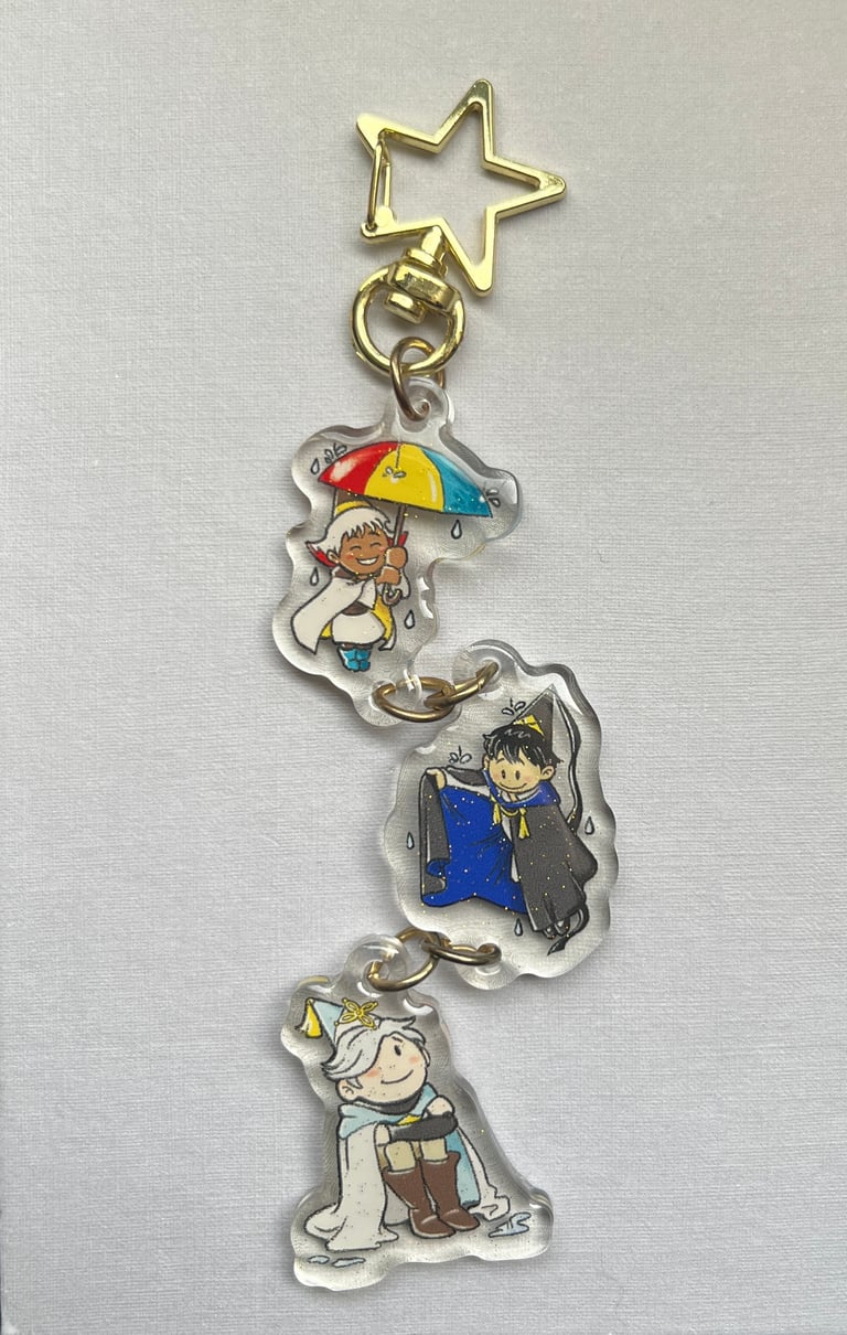 3-piece, double-sided acrylic connection charm with glitter epoxy on the front and a gold star clasp. Each piece is 1.5" tall.